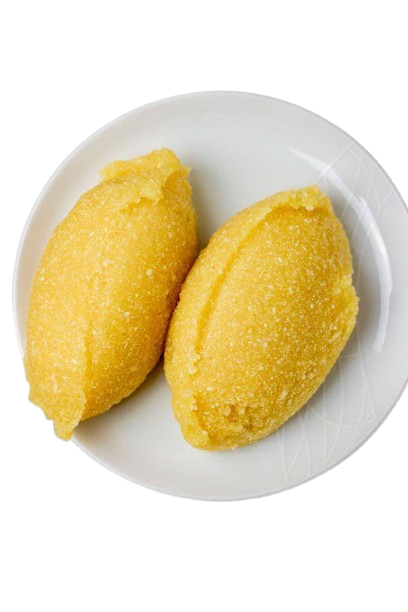Yellow or white garri prepared with hot water and shaped for soups.